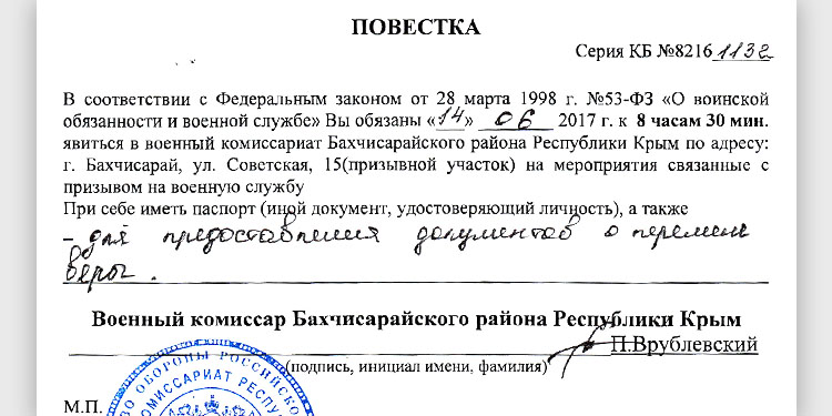 Foto: Vorladung des Militärkommissariats der Krim
