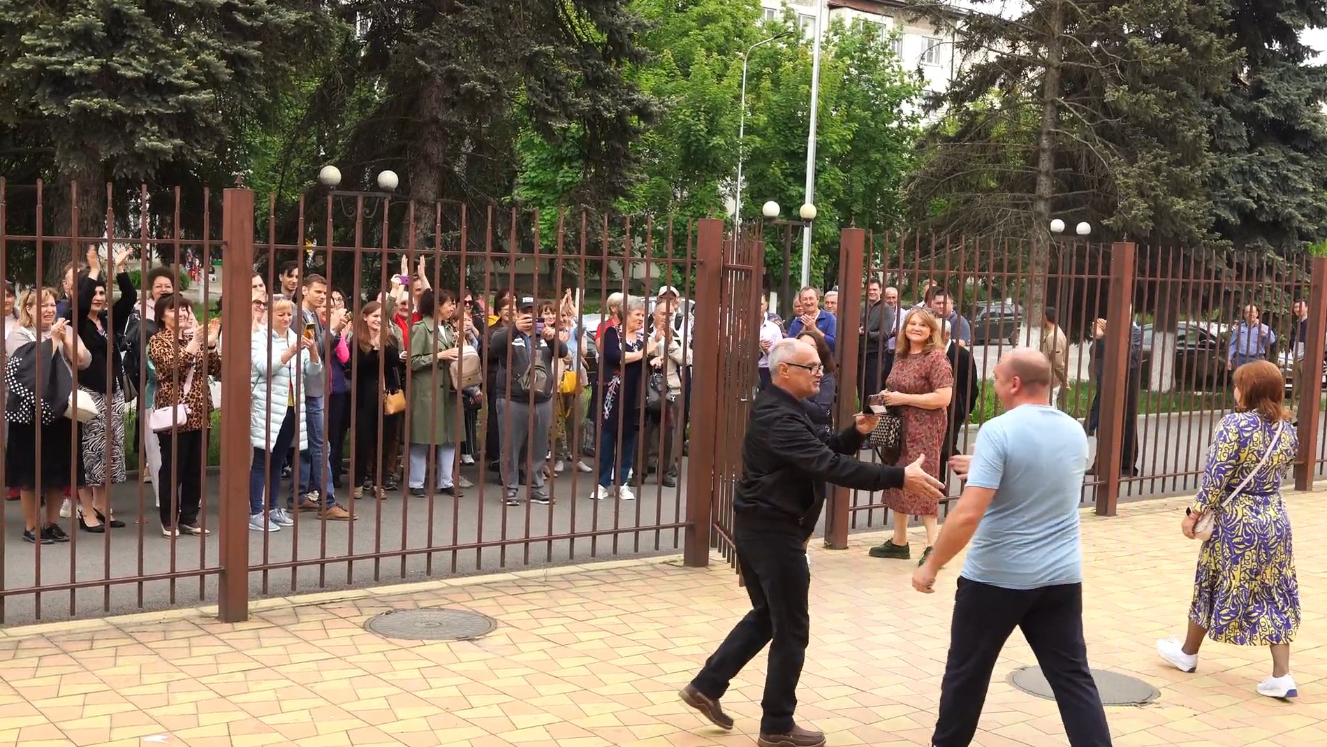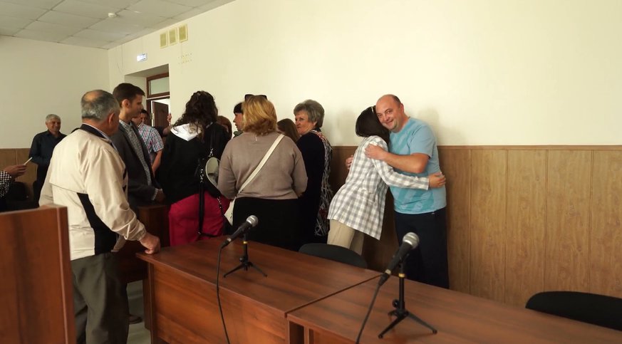 При выходе Кирилла Гущина из здания суда после оглашения оправдательного приговора его встречала большая группа поддержки