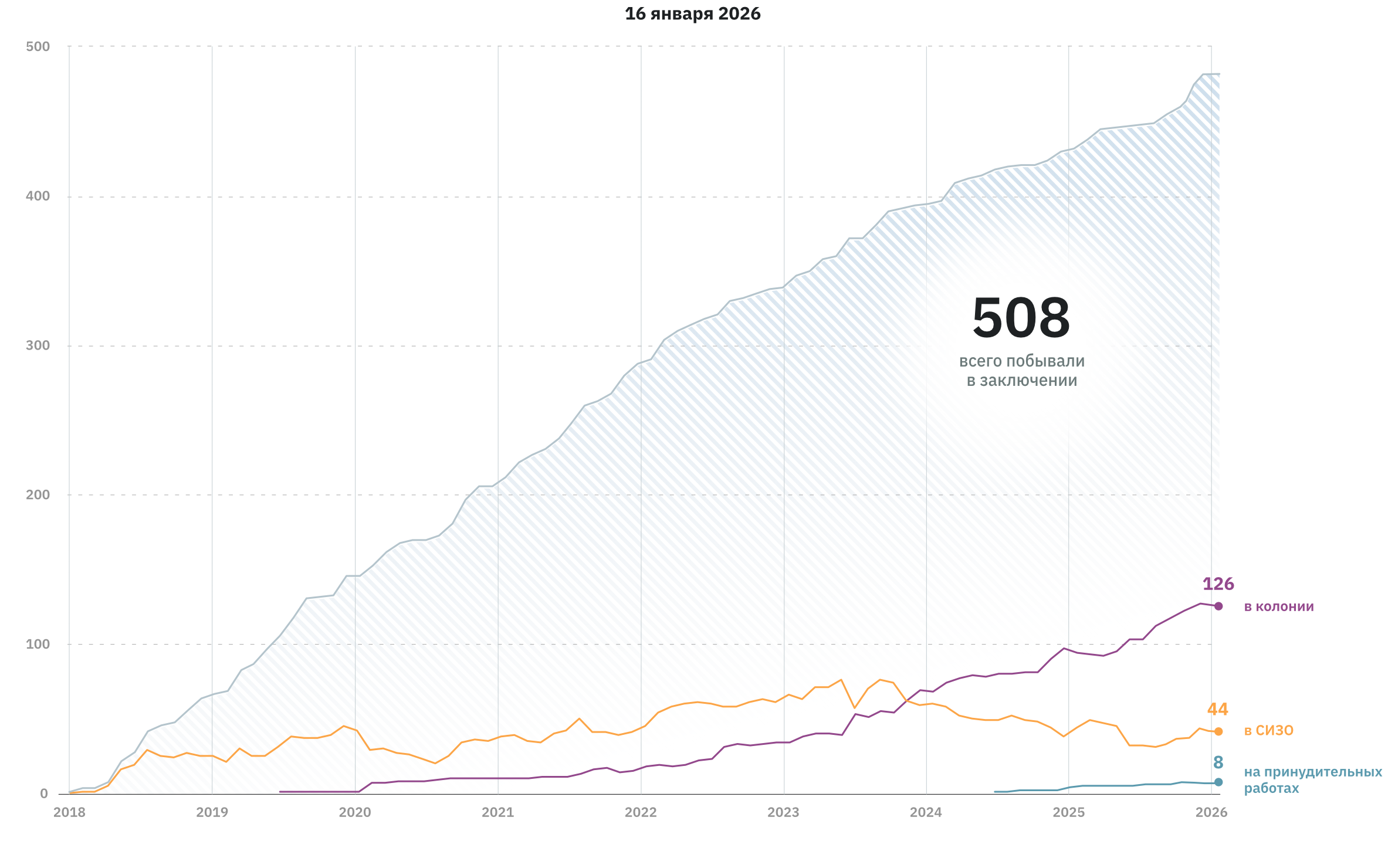 Очередная волна борьбы правоохранителей с запрещенной в России и признанной экстремистской организацией «Свидетели Иеговы» прокатилась по разным регионам. 10 февраля Абинский районный суд Краснодарского края приговорил к 7,5 годам колонии 63-летнего Александра Ившина. Столь длительный срок он получил за то, что посредством видеосвязи обсуждал со знакомыми Библию и учение иеговистов, а также исполнял религиозные песнопения. В эти же дни задержаны и обвинены в участии в экстремистской деятельности верующие в Москве, Биробиджане, Кызыле. Всего с 2017 года, когда организация была признана экстремистской и запрещена на территории РФ, преследованиям, в том числе уголовным, по данным правозащитников, подверглось более 220 человек.