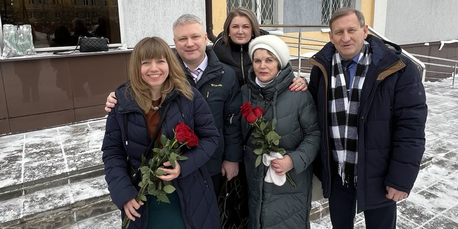 Da sinistra a destra: i Mikhalov, Svetlana Shishina, Svetlana Ryzhkova e Aleksey Arkhipov il giorno del verdetto