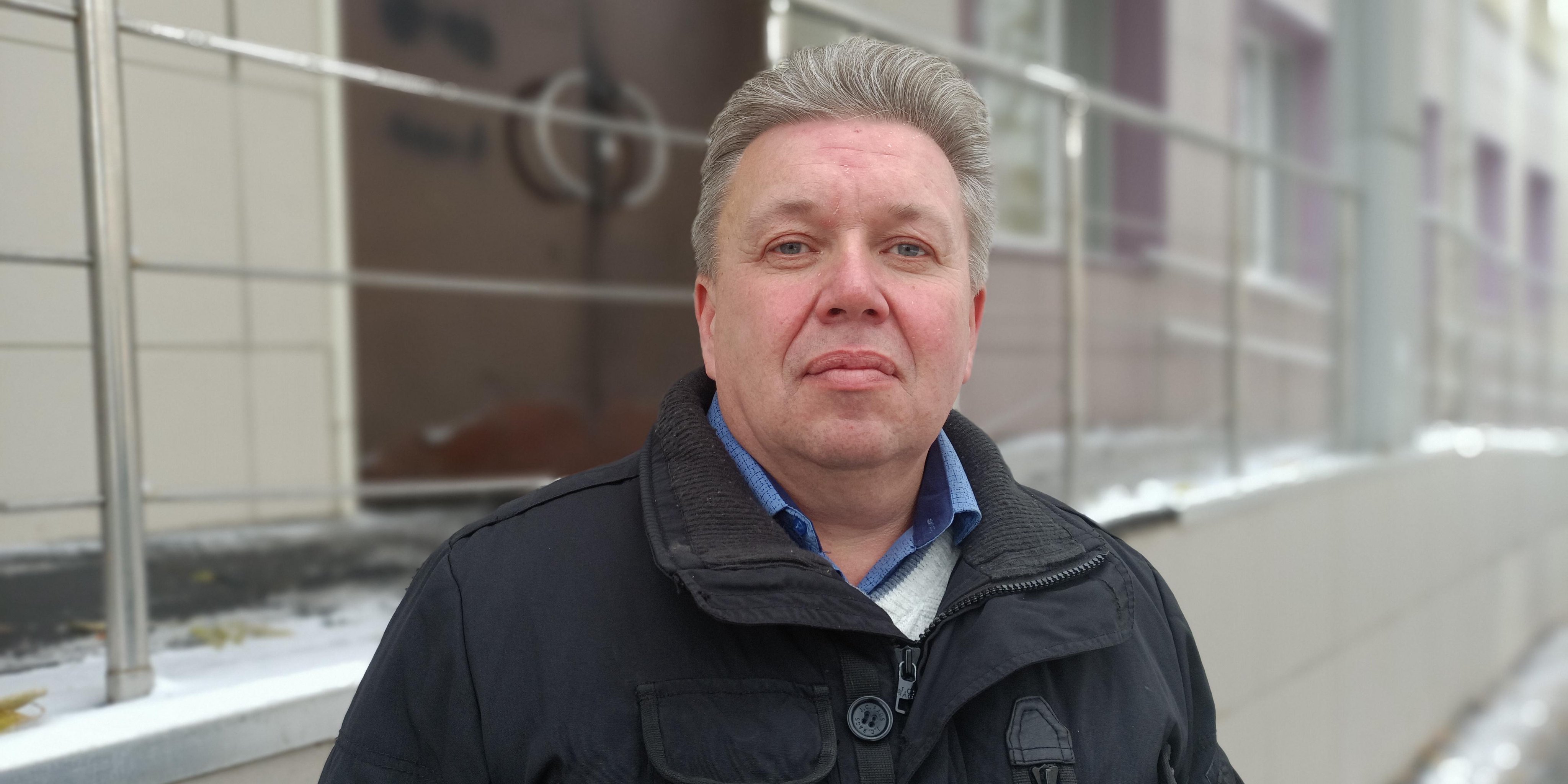 Евгений Бушев перед зданием Калининского районного суда Челябинской области, октябрь 2023