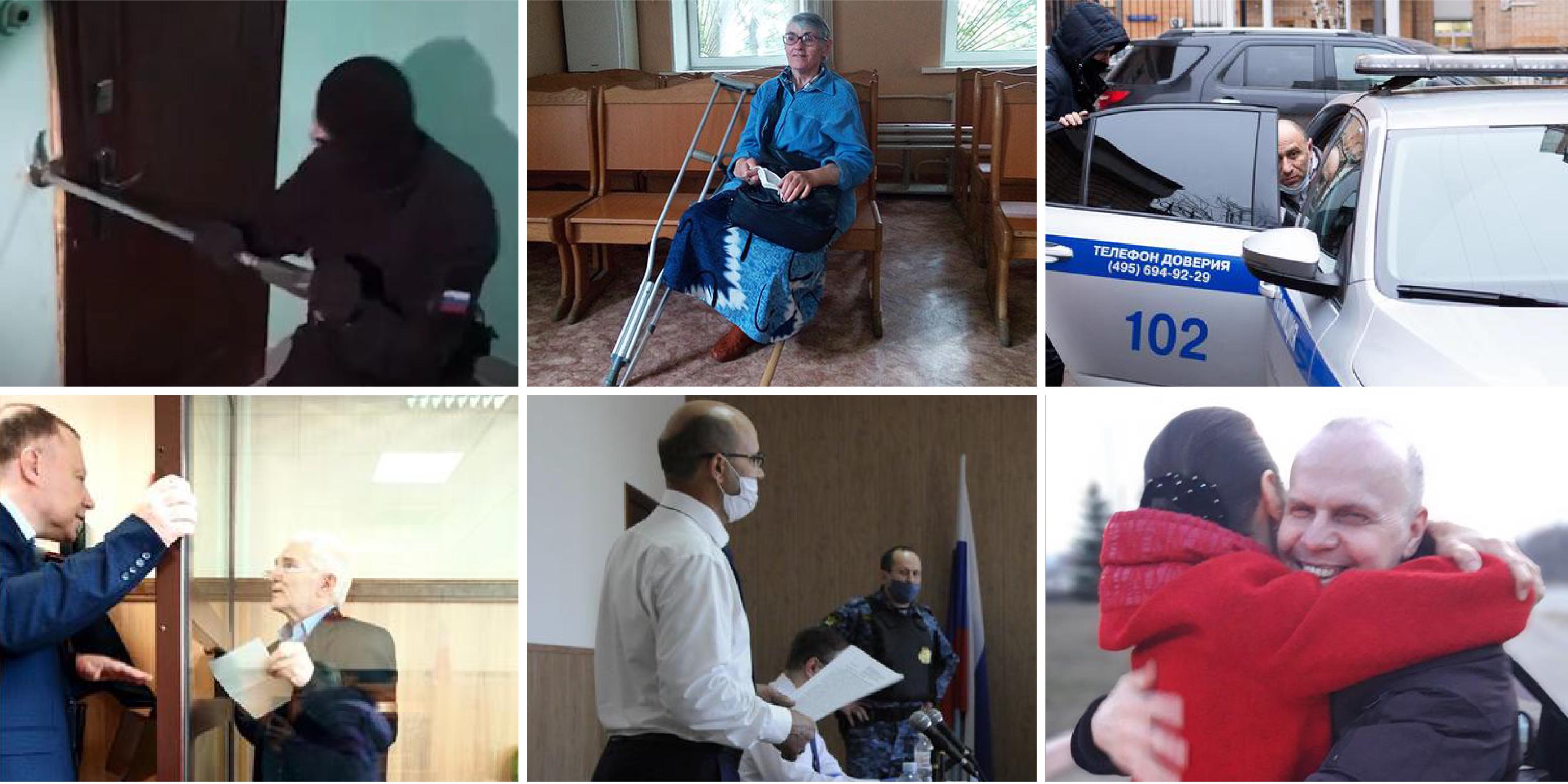 A repressão às Testemunhas de Jeová continuou em 2020. Fonte da foto acima à esquerda: Comitê de Investigação da Federação Russa
